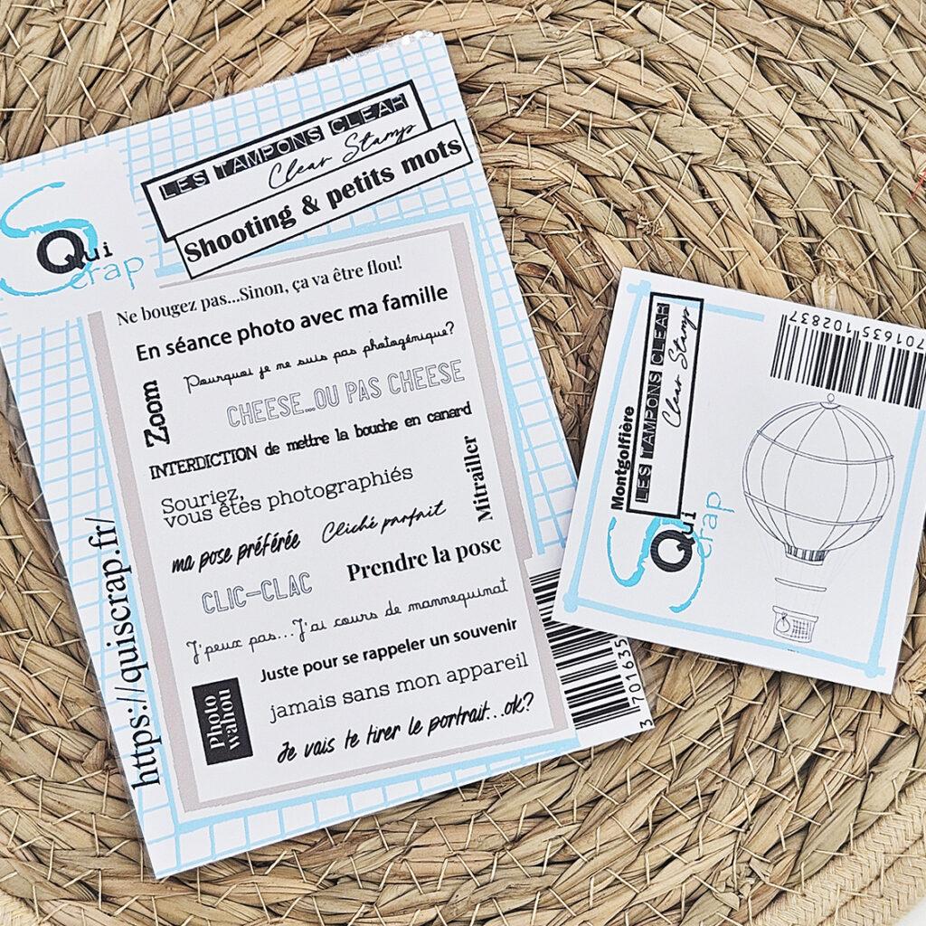 - Une planche A6 de tampons clear « Shooting & petits mots »