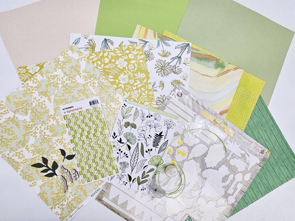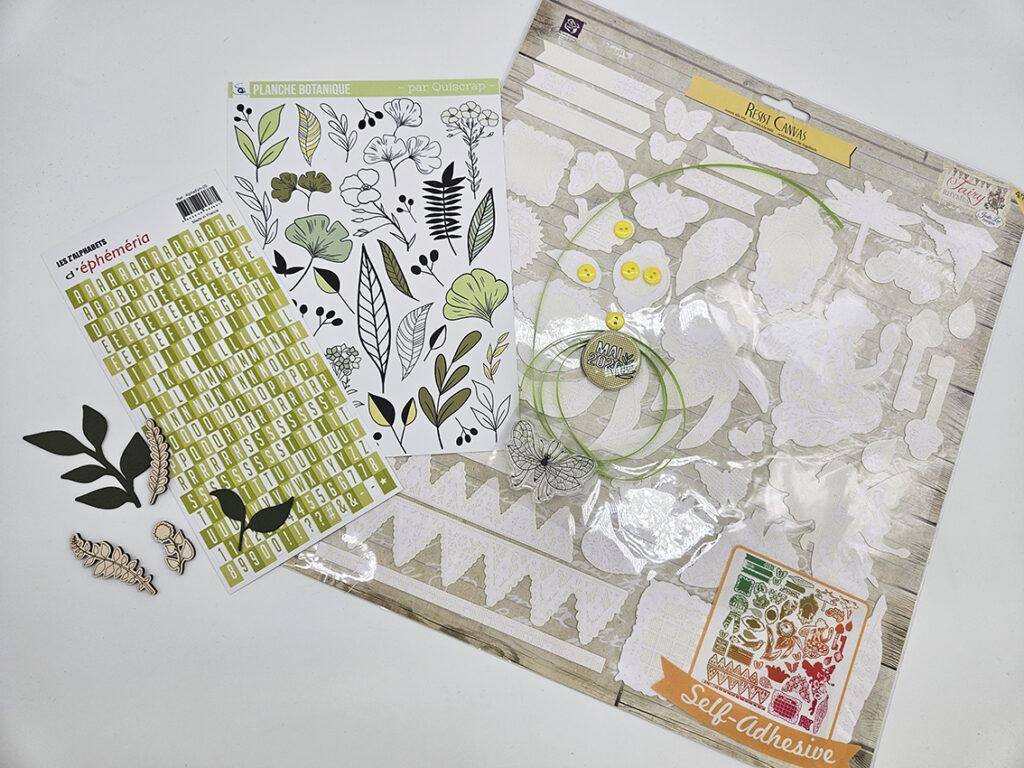 Les papiers imprimés alternent entre illustrations botaniques détaillées, motifs abstraits et fonds texturés, offrant un bel équilibre entre élégance naturelle et modernité. Les embellissements complètent harmonieusement l’ensemble : un esprit naturel et apaisant. Chaque élément est pensé pour raconter des instants de connexion : escapades en pleine nature, moments de jardinage, balades printanières ou pages célébrant la beauté simple du monde végétal.