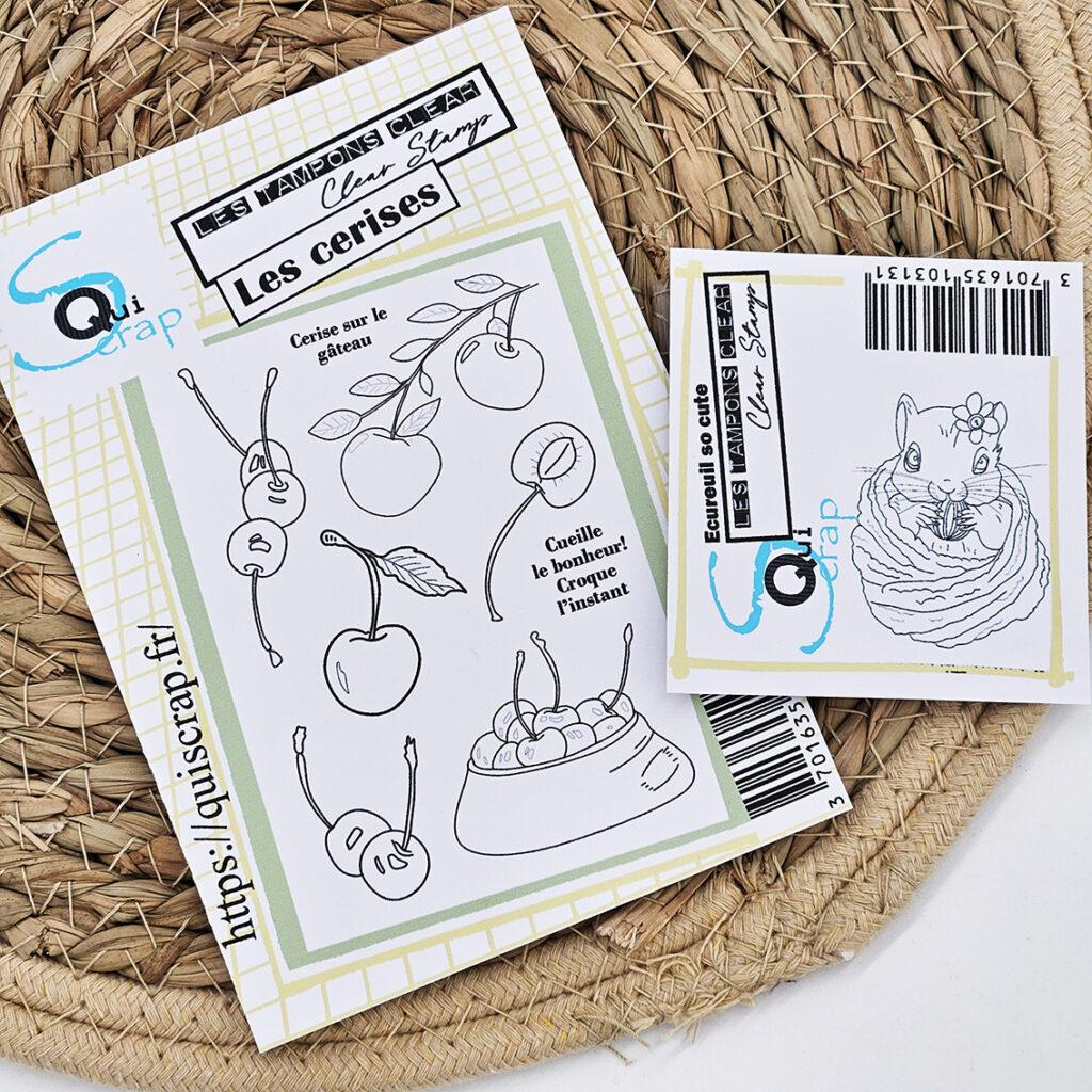 - Une planche A6 de tampons clear « Les cerises »