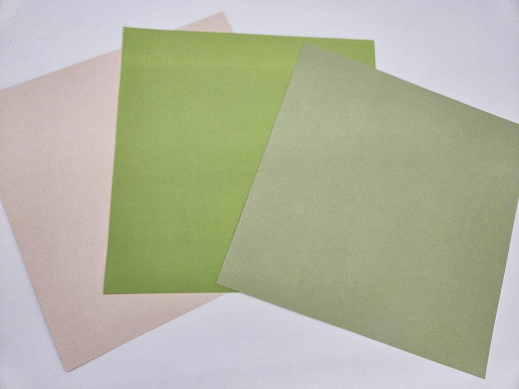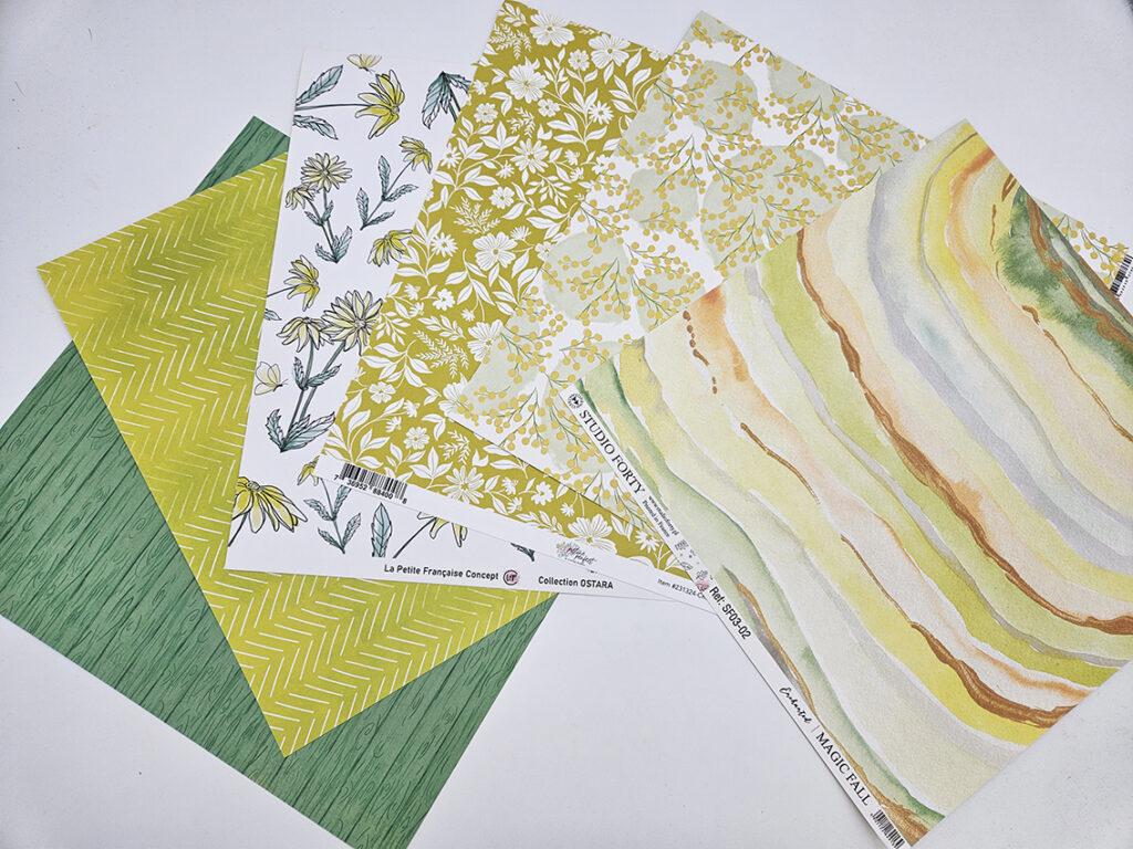 - 3 Cardstocks 30,5 x 30,5 cm : Tilleul/Vert anis/Caramel clair