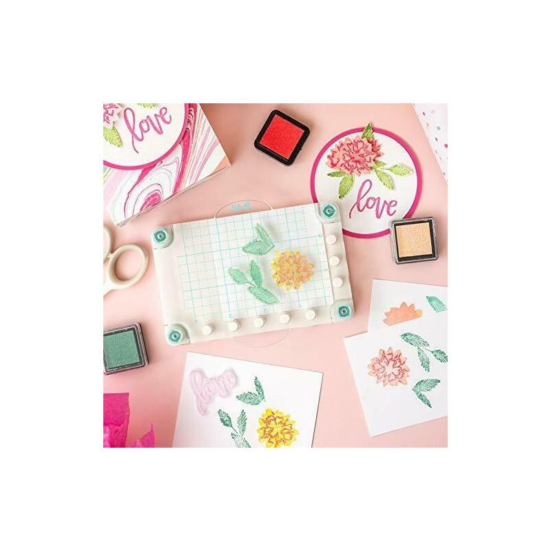 Avec Precision Press, il est possible de construire des images estampées en couches avec une précision parfaite. Appliquez une nouvelle encre sur les tampons pour une meilleure couverture et tamponnez simplement au même endroit. Ou créez différentes copies du projet, facilement et rapidement. Emboutissage de précision avec We R Makers, on aime ça!